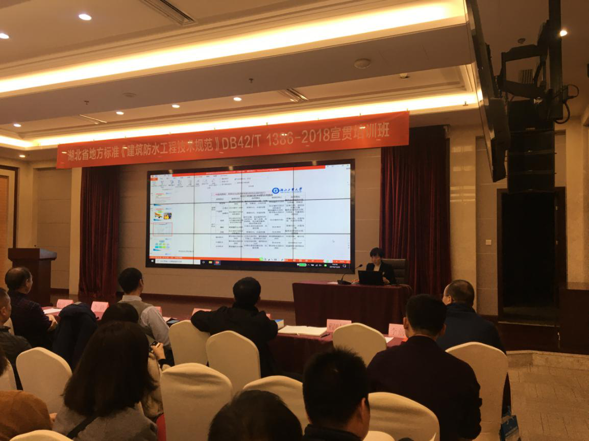 由湖北省建筑防水协会、湖北省建设工程质量安全监督总站主编,湖北省住房和城乡建设厅、湖北省质量技术监督局批准联合发布的《建筑防水工程技术规范》DB42/T 1386-2018已执行实施近一年。为进一步推动《建筑防水工程技术规范》的全面落实,湖北省勘察设计协会与湖北省建筑防水协会于2019年12月9日在武汉联合举办了一期《建筑防水工程技术规范》宣贯培训班。